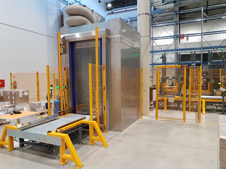 Según las preferencias del cliente o los requisitos del proyecto, podemos proporcionar una cabina de despolvado antes de la máquina cambiadora de palets para eliminar el polvo de la carga y garantizar una entrada segura en la zona blanca.